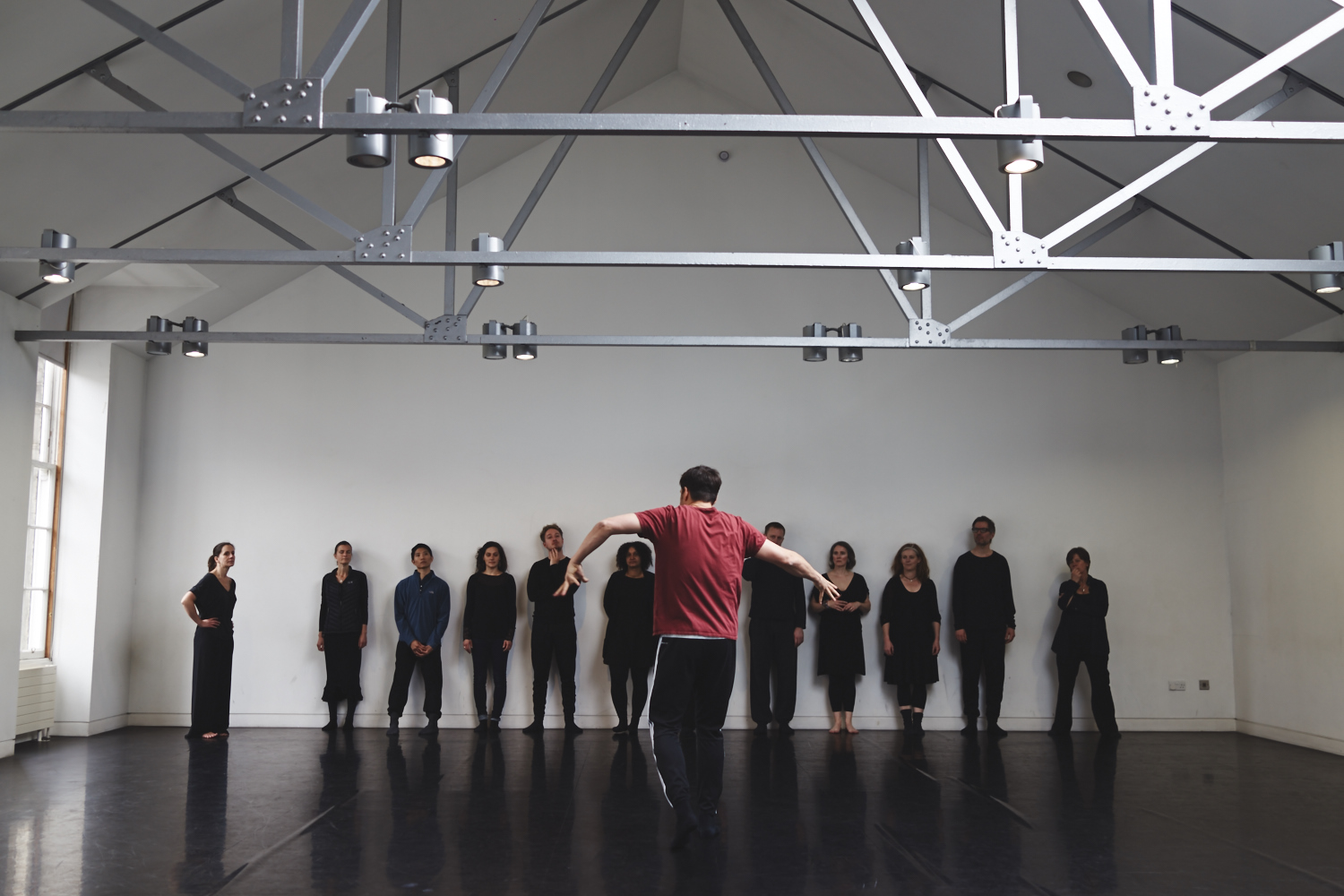 It’s the first day that musicians and dancers have got together to start the creation of this project, and there is a specific feeling in the air. It takes a while to realise what it is, but as musicians line up against a wall to receive their orders from a tall, fashionably mustachioed Swedish choreographer, Adidas tracksuit bottoms in place of the usual jeans, it becomes suddenly apparent: they are eight years old, standing in their gym clothes in P.E. class, waiting to be singled out.